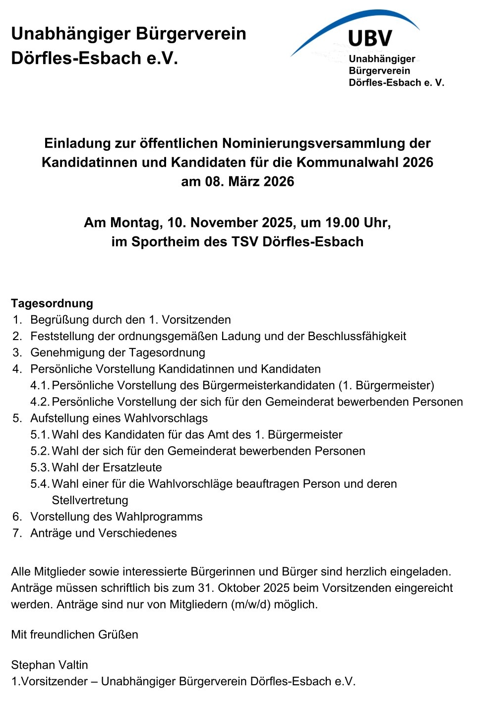 Unabhängiger Bürgerverein Dörfles-Esbach e.V.